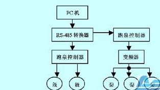 Fountain system is mainly composed of controller, inverter, fountain pumps, multifunctional valve, universal nozzle and water supply network, the fountain pump has adopt frequency control of motor speed technology, realizes stepless speed regulating of water pump, can at any time according to the strength of the audio signal to adjust pump speed, multifunction valve and universal nozzle is controlled by a fountain special controller, can achieve all sorts of design and shape according to set procedures. The system is shown in the figure below.